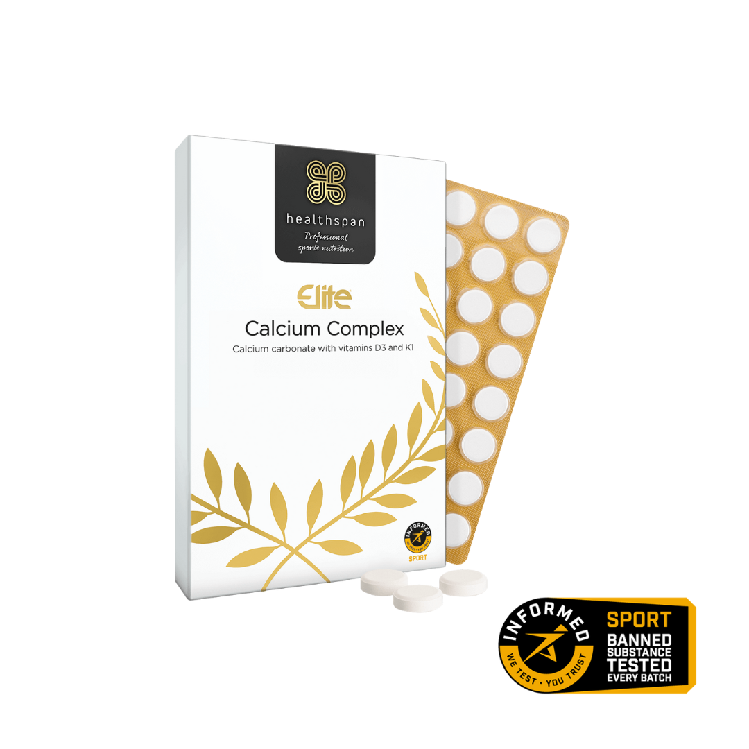 Calcium Complex, Healthspan Elite – formulă avansată pentru sănătatea oaselor și a dinților, concepută pentru sportivi și persoane active.