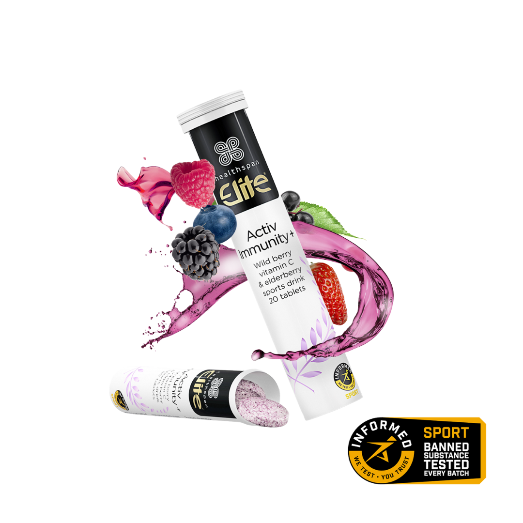 Activ Immunity Plus, Healthspan Elite – formulă complexă pentru sprijinul sistemului imunitar și protecția celulelor împotriva stresului oxidativ, concepută pentru sportivi și persoane active.