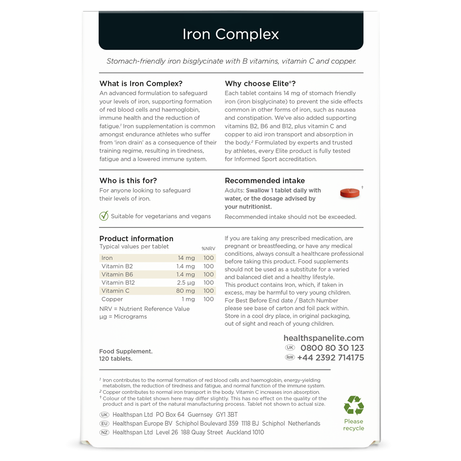 Healthspan Elite Iron Complex, Healthspan Elite, 120 tabs