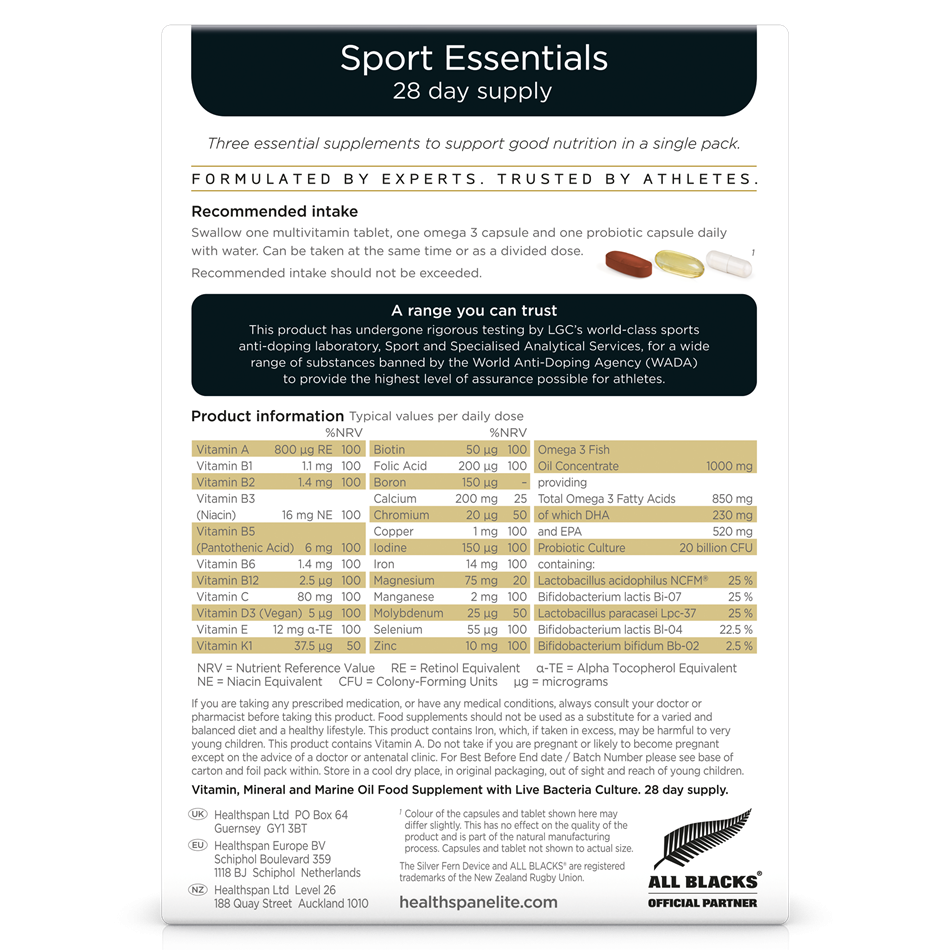 Elite Sport Essentials, Healthspan Elite – un pachet complet de 28 de zile, conceput special pentru sportivi și persoane active. Conține trei suplimente esențiale într-un format practic de tip „calendar”: