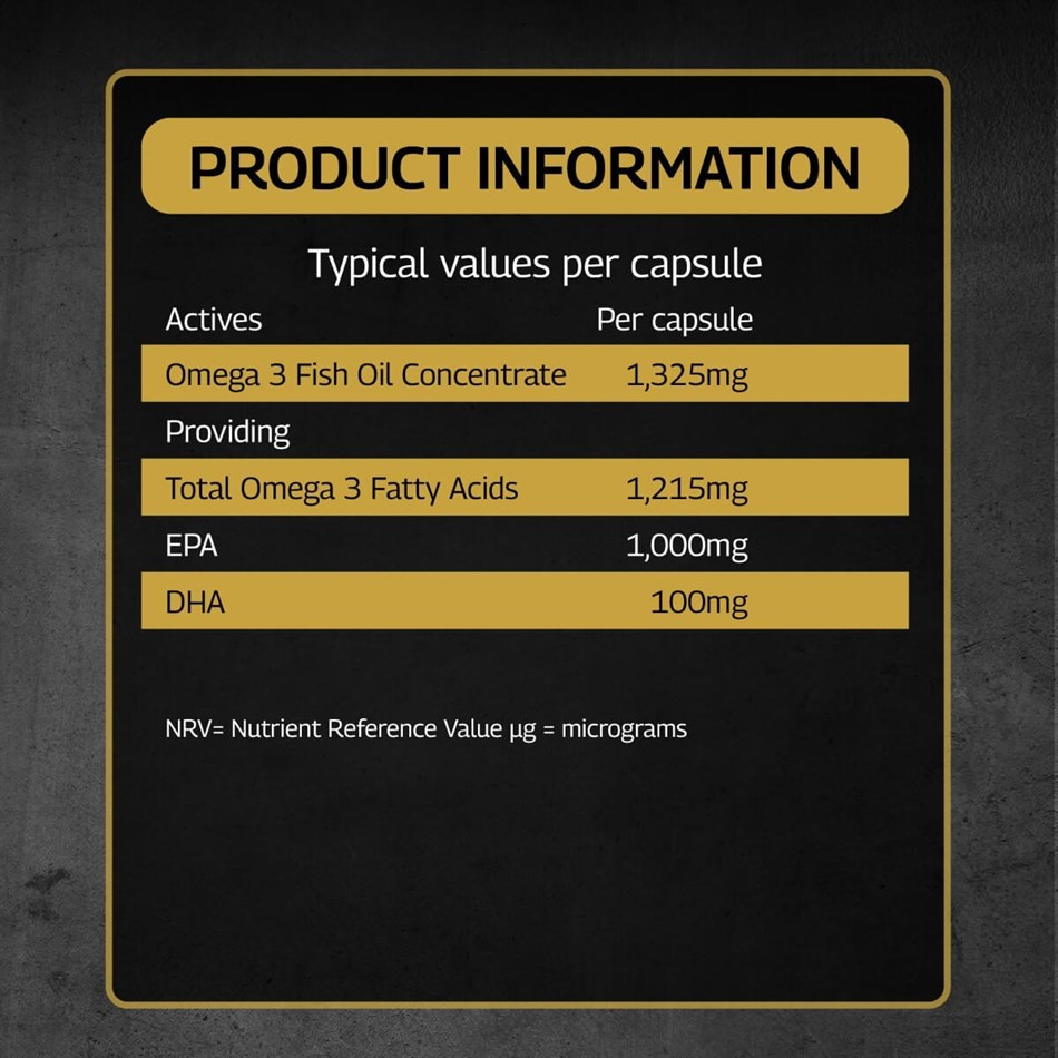 Fiecare capsulă furnizează 1 200 mg ulei de pește de înaltă puritate, cu un conținut ridicat de Omega-3 (inclusiv 1 g EPA per capsulă). Această concentrație sprijină:
